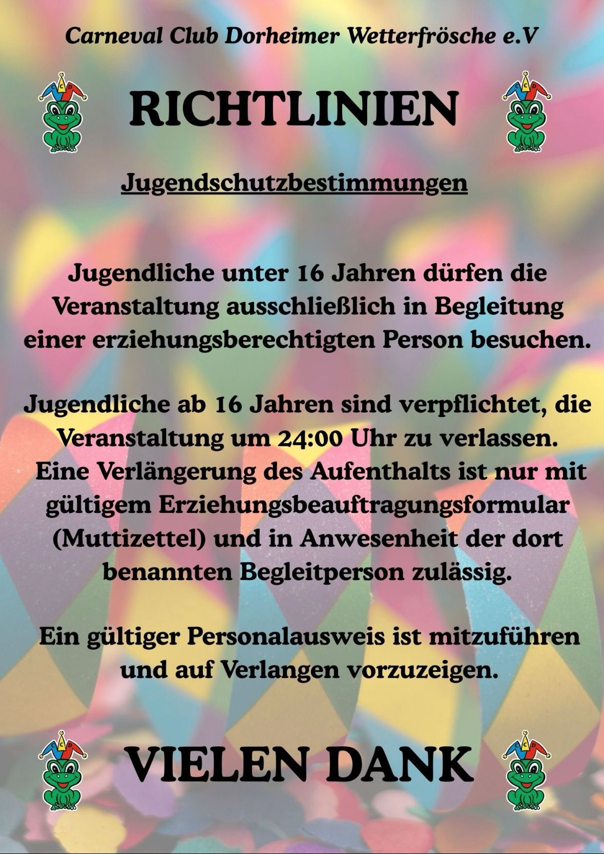Für alle Veranstaltungen des CCDW möchten wir darauf hinweisen, dass wir uns an die Regelungen des Jugendschutzgesetzes halten werden !!!!